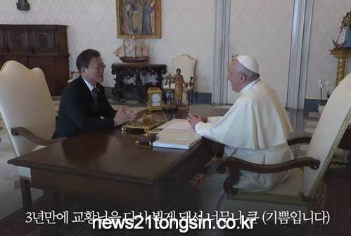 문 대통령은 이 밖에도 프란치스코 교황과 코로나19, 기후변화 등에 대해 의견을 교환했다.