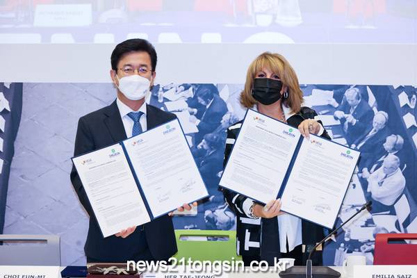 유럽 국외출장 중인 허태정 대전시장은 28일 10시(현지시간) 스페인 바르셀로나 세계사무국 에밀리아 싸이즈 사무총장과 ‘2022 대전 세계지방정부연합(UCLG) 총회’성공적 추진을 위한 업무협약을 체결했다.