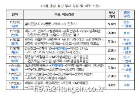 6월 동서 횡단 행사를 시작으로 11월 구간별 행사와 동서 횡단 행사 각 1회가 완료되면 올해 총 8회에 걸친 대장정을 종료된다.