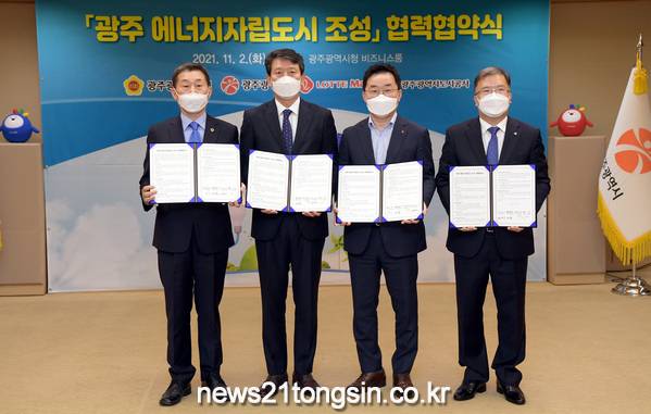 광주광역시는 2일 시청 비즈니스룸에서 롯데마트, 광주시의회, 광주시도시공사와 탄소중립 에너지자립도시 조성에 상호 협력하는 협약을 체결했다.