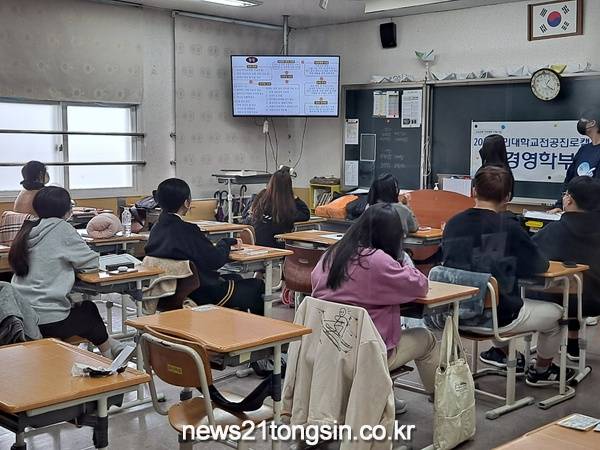 명진고가 지난 10월30일 광산구 소재 1·2학년 고교생들을 대상으로 강당 및 각 교실에서 ‘2021학년도 고교대상 전공진로캠퍼스’를 개최했다.