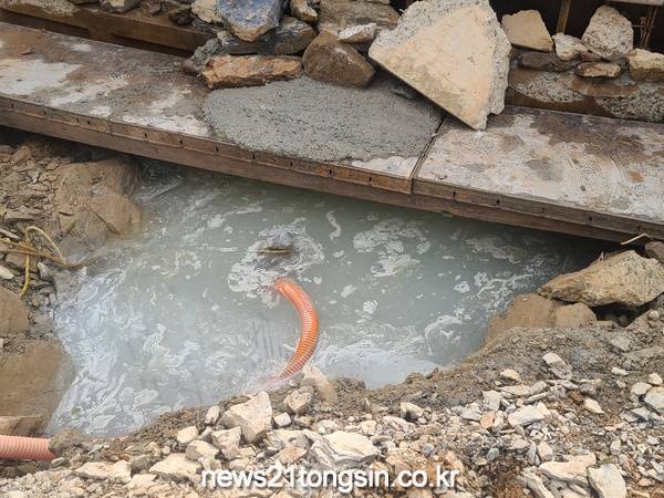 해당 업체는 콘크리트 타설 중 발생하는 시멘트 물을 처리하기 위한 폐수방지시설을 설치하지 않고, 무단으로 하천에 방류하다 적발 됐다.
