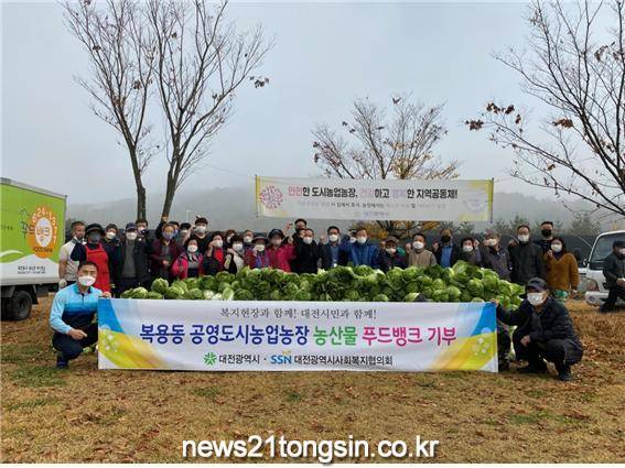 ▲ 사진출처=대전광역시청□ 대전시는 지난 5일 유성구 복용동 공영도시업농장에서 자원봉사자30여 명과 함께 수확한 배추 2,000포기를 푸드뱅크(대전사회복지협의회)에 전달했다고 밝혔다.