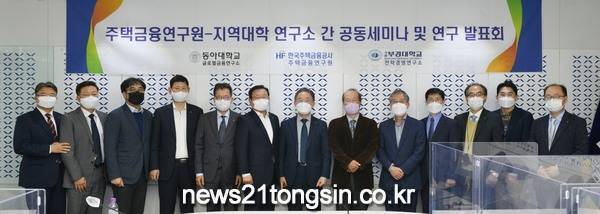 한국주택금융공사(HF, 사장 최준우) 주택금융연구원은 동아대학교(총장 이해우) 글로벌금융연구소, 부경대학교(총장 장영수) 전략경영연구소와 산학협력을 통한 세미나 및 공동연구 발표회를 개최했다고 10일 밝혔다.