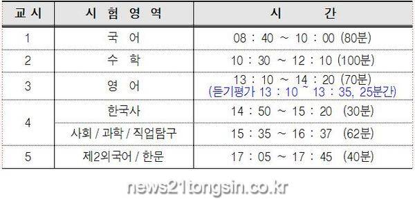 (대구=뉴스21통신) 유재원기자 = 대구시는 수능일인 11월 18일 07시부터 시험 종료 시까지 구·군과 합동으로 50개(예비 1포함) 수능시험장 주변 소음발생원에 대한 집중단속을 실시한다.