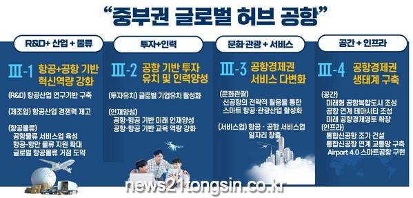 이에 항공+공항 기반 혁신역량 강화, 공항기반 투자유치 및 인력양성, 공항경제권 서비스 다변화, 공항경제권 생태계 구축 등 4개 분야에서 구체적인 계획을 마련할 계획이다.