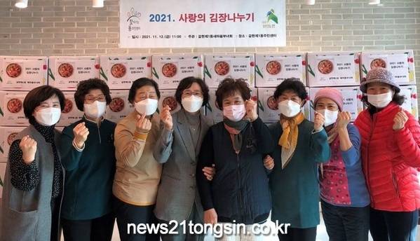 코로나19 확산 방지를 위해 방역지침을 준수하여 진행한 이번 행사는 쌀쌀한 날씨에도 불구하고 이른 아침부터 회원분들이 모여 절임배추와 양념 속재료 등을 정성껏 준비했다. 완성된 김치를 10kg씩 50박스로 개별 포장해 저소득계층 50가구에 직접 전달했다.
