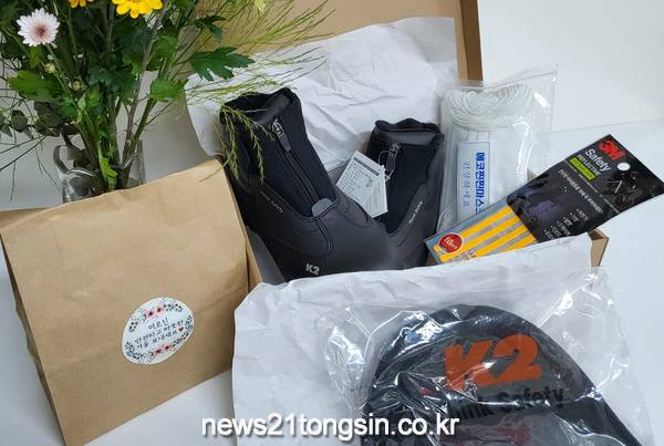 구는 111명의 노인들에게 방한화, 방한모자, 빛 반사 스티커, 반코팅 장갑, 마스크 등을 지급했다.