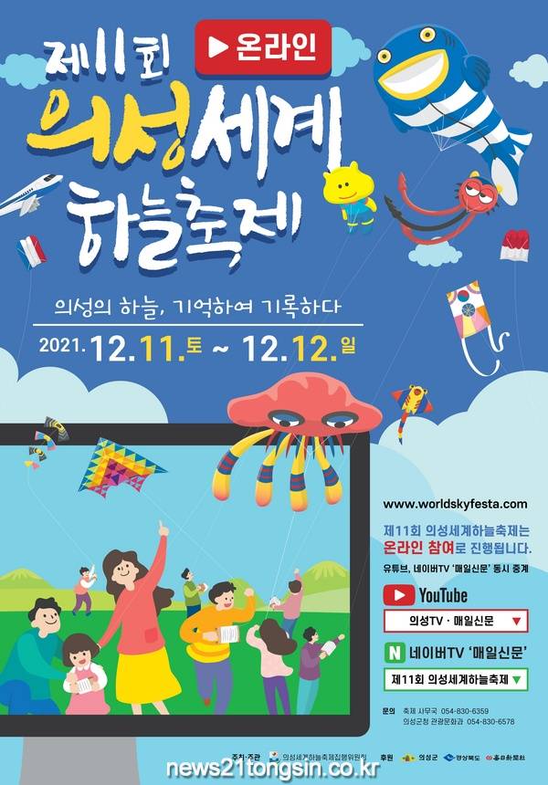 의성군은 의성세계하늘축제집행위원회가 주최・주관하고 경상북도, 매일신문사가 후원하는 제11회 의성세계하늘축제(이하 하늘축제)를 오는 12월 11일과 12일 양일간 온라인으로 개최한다.