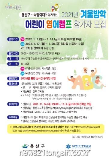 서울 용산구(구청장 성장현)가 숙명여자대학교(총장 장윤금)와 함께 겨울방학 어린이 영어캠프를 운영한다.
