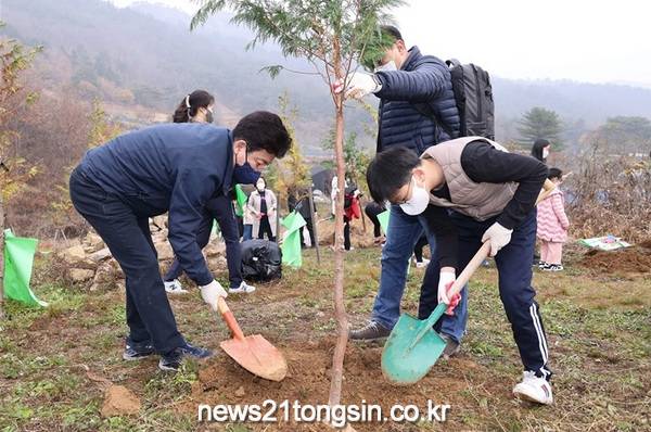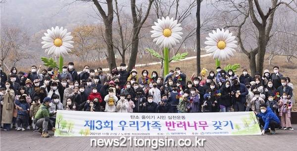 ▲ 사진=대전광역시청□ 대전시는 21일 오전 서구 흑석동에 위치한 노루벌 적십자생태원에서 대전형 탄소제로 시민실천운동의 일환으로 세 번째‘반려나무 갖기’식목행사를 가졌다.