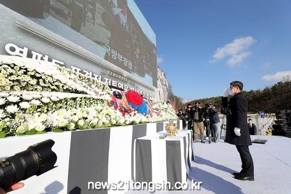 서 장관은 "3월, 우리 군은 포격도발에서 포격전으로 용어를 재정립했다. '추모식'에서 '전투영웅 추모 및 전승기념행사'로 명칭도 변경했다"며 "대통령께서는 10월 국군의 날 행사를 통해 연평도 포격전 참전장병을 포상하셨다. 정부는 국가를 위해 헌신한 영웅들의 희생을 영원히 기억하고 명예를 지켜드릴 것"이라고 말했다.