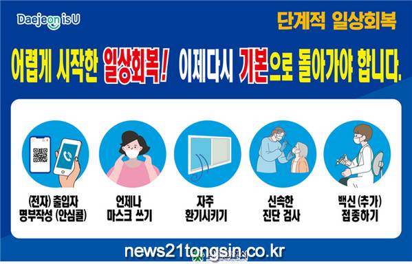 허 시장은“그동안의 어려움을 잘 극복해왔던 것처럼 대전 공동체의 힘으로 지금의 고비도 슬기롭게 극복할 수 있다”며 기본 방역 수칙 준수 참여를 거듭 부탁했다.