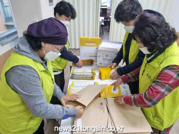 이날 지평면 지역사회보장협의체에서는 11월 월례회의를 마친 후, KF-94 마스크 1,320매를 양평군 ‘코로나19 극복을 위한 취약계층 마스크 배분 사업’으로 봉투 포장과 주소 라벨 작업을 했으며, 마스크는 관내 취약계층 132가구에 우편 배송될 예정이다.