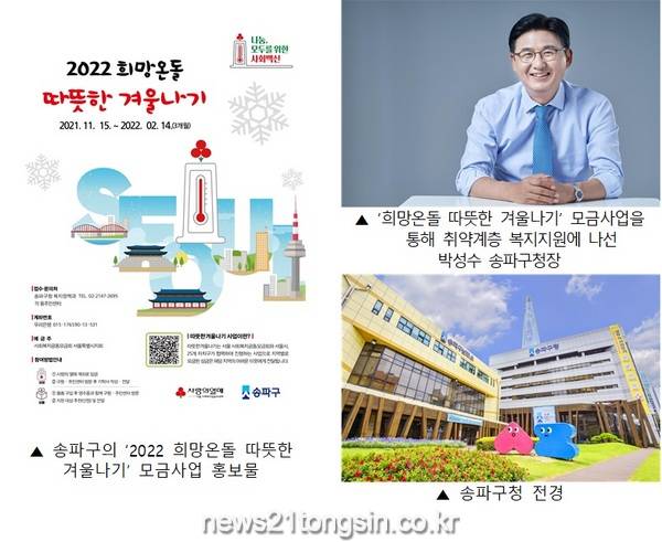 ▲ 사진=송파구송파구(구청장 박성수)가 내년 2월 14일까지 3개월 간 ‘2022 희망온돌 따뜻한 겨울나기’ 모금사업을 본격 추진한다고 24일 밝혔다.