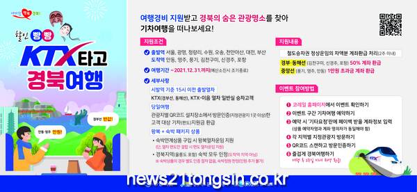 경상북도와 한국철도공사가 제휴해 KTX를 이용한 경북 여행객에게 파격적인 할인혜택을 제공하는 특별 이벤트를 개시했다고 밝혔다.