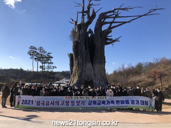 경상북도군위교육지원청(교육장 김장미)은 지난 1일 오후 2시 군위군 삼국유사면에 있는 삼국유사테마파크에서 학부모 및 교직원을 대상으로 ‘2021 삼국유사의 고장 얼 잇기’ 군위교육가족 한마음 걷기대회를 개최했다.