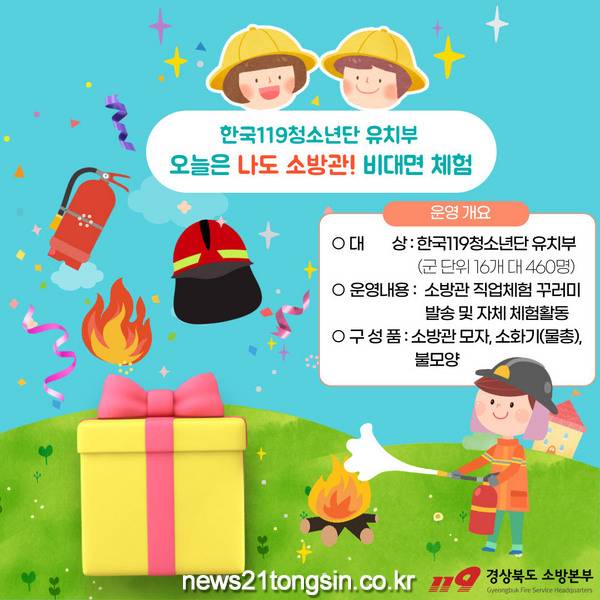 경북소방본부는 경북 119청소년단 유치부 대상‘오늘은 나도 소방관! 비대면 직업체험 행사’를 오는 6일부터 10일까지 운영한다고 3일 밝혔다.