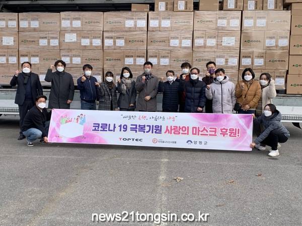 지난 2일 ㈜톱텍(대표이사 이재환)은 양평군 취약계층의 코로나19 예방을 위한 마스크 약 26만장을 (사)희망을나누는사람들을 통해 전달하였다.