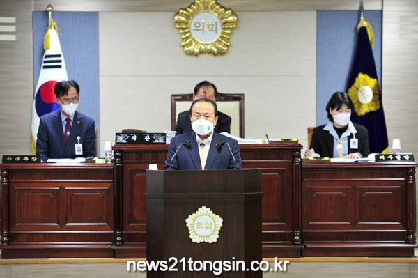 마지막으로 김영만 군수는 “눈앞에 보이는 순간의 이익보다 미래를 바라보는 장기적 안목으로 군위 미래 발전의 청사진을 그려나가 통합신공항과 대구시 편입의 대 역사를 반드시 이루어 내겠다”면서 “저와 500여 공직자는 땀이 없으면 아무것도 이룰 수 없다는 무한불성(無汗不成)의 자세로 오직 군민만을 바라보며 초심을 잃지 않고 새로운 역사를 쓰는데 더 많은 땀과 열정을 쏟아 붓겠다”고 굳은 의지를 피력하면서 시정연설을 마무리 했다.