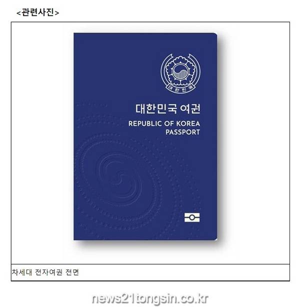 ‘차세대 전자여권’은 폴리카보네이트 재질로 개인정보 면의 보안성과 내구성이 강화됐다. 표지 색상은 기존 녹색에서 남색으로 변경되고 사증면수도 최대 58면으로 확대된다. 디자인은 우리 문화유산 이미지를 활용해 한국의 전통과 문화를 살렸다. 주민등록번호는 제외됐고 여권번호 체계 변경과 함께 다양한 최신 보안 요소가 반영됐다.