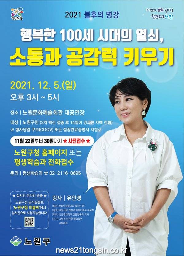 한편, 구는 2019년 100세 시대 변화하는 시대에 맞는 내실 있는 교양 강연을 제공하고자 기존 <노원교양대학>을 <불후의 명강>으로 재편했다.