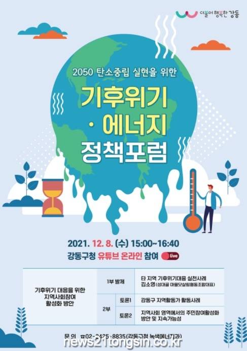 ▲ 사진=강동구강동구(구청장 이정훈)가 오는 8일(수) 15시, 강동구청 유튜브를 통해 2050 탄소중립 실현을 위한 ‘기후위기·에너지정책 포럼’을 개최한다고 밝혔다.