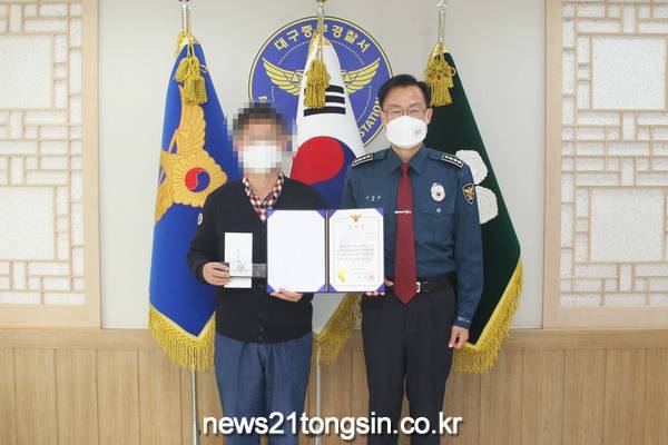 (대구=뉴스21통신) 유재원기자 = 대구중부경찰서(총경 시진곤)는 지난 12.6(월) 14:37분경에 발생한 보이스피싱 피의자를 검거 후 112에 신고, 경찰에 인계한 00교통(주) 택시기사 노00에게 감사장 수여 및 신고 보상금을 전달했다.