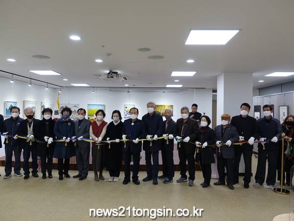 군위미협은 14일 군위생활문화센터 행복숲갤러리에서 김영만 군수, 심칠 군의회 의장, 박승근 문화원장을 비롯한 정재권 군위미협회장과 회원 등이 참석한 가운데 ‘2021 군위군미술협회 작품전’ 개막식을 했다.