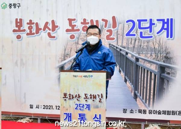 류경기 중랑구청장은 “이제 봉화산 동행길 전 구간이 개통돼 신내동, 상봉동 뿐만 아니라 묵동에서도 동행길을 이용하실 수 있을 것”이라며, “누구나 소외되지 않고 함께 산을 오른다는 동행길의 의미처럼 많은 분들이 봉화산의 정취를 감상할 수 있기를 바란다”라고 말했다.
