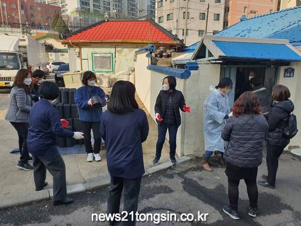 협의회는 지역 내 저소득노인 가정 5곳 중 4곳에는 한 가구당 연탄 250장과 사회적기업 제품 선물 꾸러미를, 1곳에는 도배·장판 시공을 진행하고 선물 꾸러미를 전달했다.