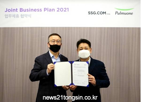 SSG닷컴은 16일 오전 서울 종로구 소재 SSG닷컴 본사에서 풀무원과 ‘온라인 식품 시장 선도를 위한 업무협약(JBP)’을 맺었다고 밝혔다. 협약식에는 황운기 SSG닷컴 상품본부장, 천영훈 풀무원 영업본부장 등 양사 주요 관계자가 참석했다.