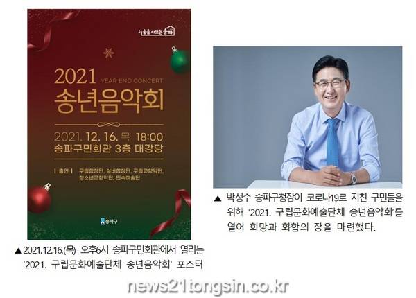 ▲ 사진=송파구송파구(구청장 박성수)가 16일 오후 6시 송파구민회관 3층 대강당에서 구립문화예술단체가 함께하는 <2021 구립문화예술단체 송년음악회>를 개최한다.
