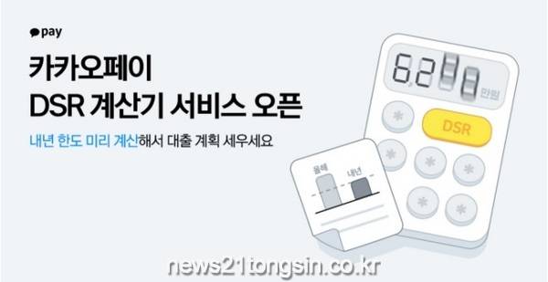 카카오페이는 직접 계산하기 어려운 부채원리금상환비율(DSR) 간편하게 확인할 수 있는 ‘DSR 계산기’ 서비스를 출시했다고 21일 밝혔다.