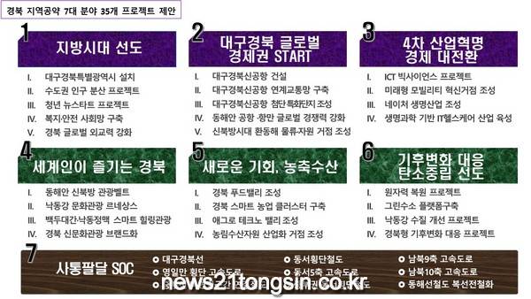 경상북도가 다가오는 제20대 대선과 관련해 차기 정부 지역 공약으로 7대 목표 35개 프로젝트를 제안했다.