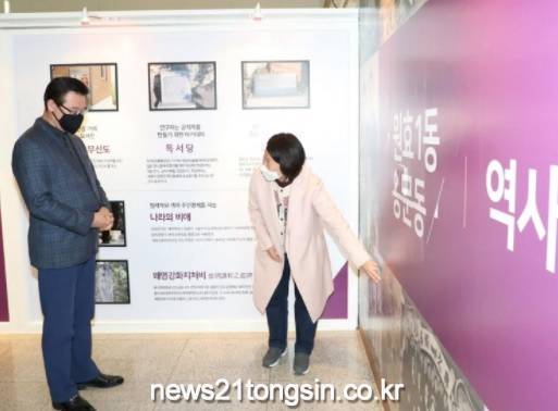 성장현 용산구청장이 12월 21일 용산아트홀 전시실에서 열린 ‘2021년 용산 지역사기록사업 전시회’에 참석했다.