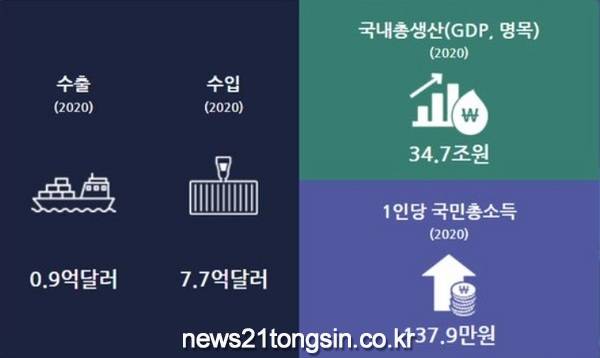 23일 통계청이 발표한 '2021 북한의 주요통계지표'에 따르면 2020년 북한의 무역 총액은 전년 대비 73.4% 감소한 8억6000만달러에 그쳤다. 국가통계포털에서 통계치를 확인할 수 있는 1990년 이후 무역총액 규모는 가장 적고, 전년 대비 감소율도 가장 컸다. 수출은 9000만 달러, 수입은 7억7000만 달러로 전년보다 각각 68.0%와 73.9% 줄었다. 북한의 무역총액은 남한(9801억 달러)의 1136분의 1 수준이다.