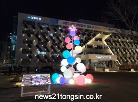 2012년부터 매년 다른 형태와 소재로 이색적인 크리스마스트리 조형물을 선보이고 있는 강동구가 올해는 ‘희망이 방울방울’이라는 주제로 강동구민의 희망을 담은 방울로 구성된 크리스마스트리를 강동구청 열린뜰에 설치했다.