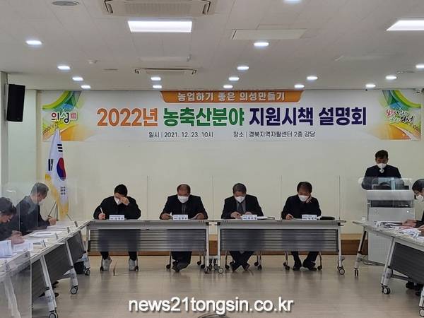의성군은 23일 2022년 농축산분야 지원시책 설명회를 개최하고, 농축산업 활성화 대책 마련에 대해 논의했다.