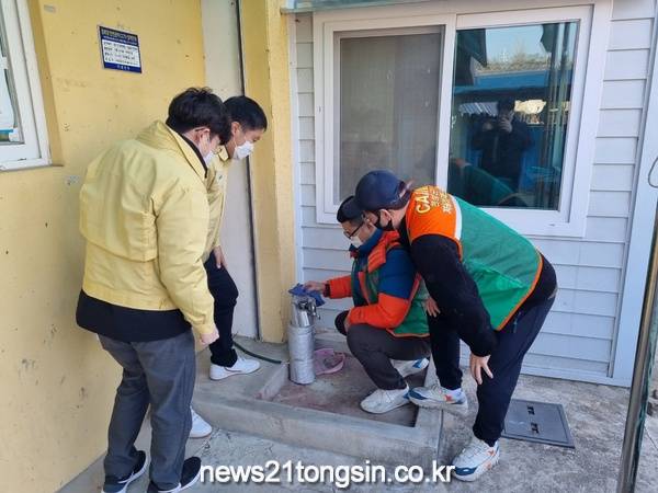 의성군과 의성군지역자율방재단(단원 245명)으로 구성된 합동 점검반은 20일부터 24일까지 한파 쉼터 530개소 전체를 대상으로 수도계량기 동파방지 조치 및 난방시설 등 시설물 상태 점검, 화재예방 홍보 및 소화기 비치상태 등을 점검하고, 코로나19 확산 방지를 위한 손소독제를 배부했다.