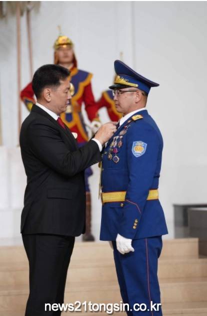오늘, 몽골 U.Khurelsukh 대통령은 정부 청사 구인 백기 홀에 상을 수여했다.