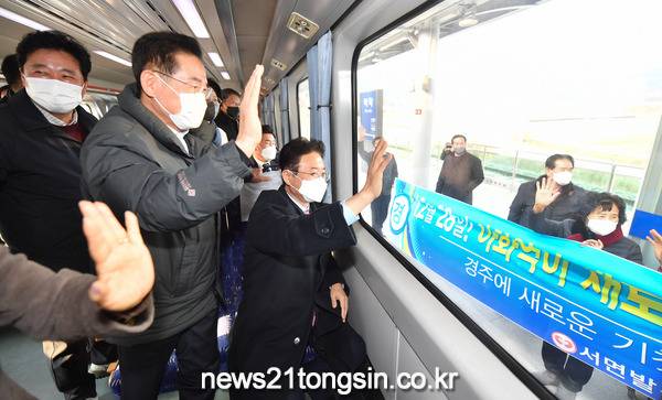 오전 행사가 끝나고 이철우 지사는 영천역으로 이동해 영천시장과 열차에 탑승 이동했고, 서경주역에서는 경주시장을 만나 포항역에 도착해 포항시장 등 지역 정치권 및 관계자들과 함께 동해남부선 개통식 행사를 가졌다.