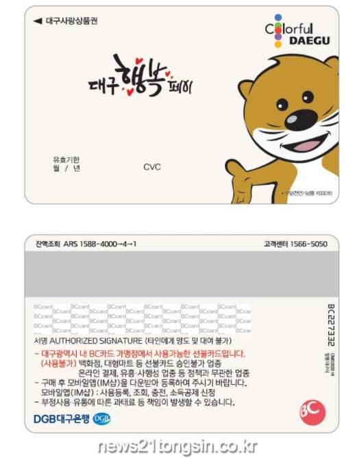 대구시는 2022년 1월 1일부터 1조원 규모의 대구사랑상품권 ‘대구행복페이’ 발행을 재개한다. 대구시는 올해 11월 입찰을 통해 대구행복페이를 맡아 운영할 운영대행사를 공개 모집했으며, 대구은행이 최종 선정돼 2022년도 대구행복페이 발행을 위한 준비를 마쳤다. 대구은행은 ’24년 12월까지 향후 3년간 운영을 맡게 된다.