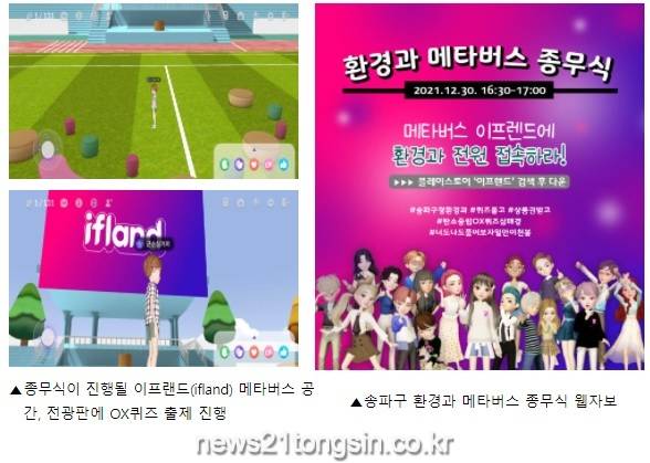 ▲ 사진=송파구청코로나19 확산으로 관공서 및 기업의 대면 종무식이 생략되는 사회 분위기 가운데, 송파구(구청장 박성수)가 서울시 자치구 최초로 발표한 '송파형 그린뉴딜 탄소중립도시 계획'의 주무 부서인 환경과가 탄소중립과 환경 보호의 중요성을 되새기는 메타버스 비대면 종무식을 12월 31일 개최한다.