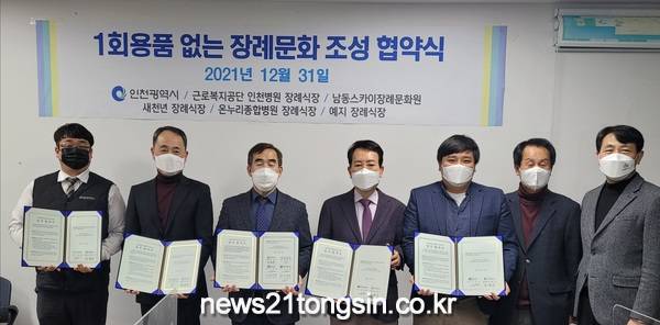 인천광역시는 31일 인천시청에서 지역 내 5개 민간 장례식장과‘1회용품 없는 장례문화 조성 협약’을 체결했다고 밝혔다.