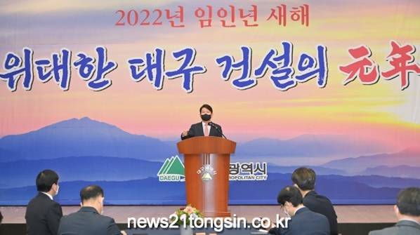 권영진 대구시장은 “2022년은 포스트코로나와 더불어 디지털 전환, 탄소중립, 국제적 관계와 질서 변화, 국내정치의 변화 등 대전환의 해가 될 것”이라며, “이러한 시대 변화를 새로운 미래로 나아가는 도약의 기회로 만들어 위대한 대구 건설의 원년으로 만들기 위해 공직자 모두 창의적이고 혁신적이고 헌신적인 자세를 갖고 한 해를 맞이하자”고 거듭 강조했다.
