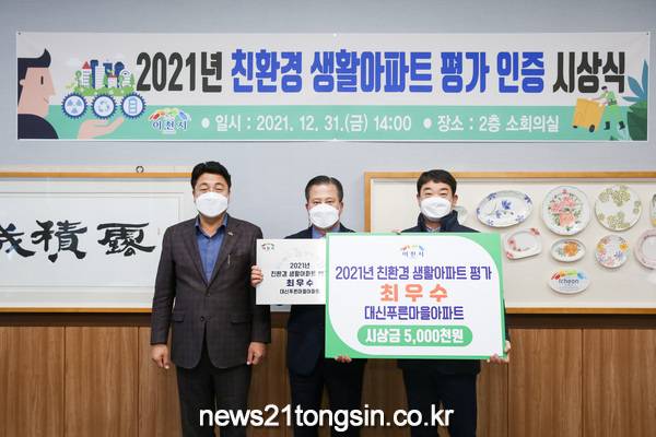 이천시(시장 엄태준)는 2021년도 친환경 생활아파트 인증 평가를 완료하여 지난 12월 말에 우수아파트 시상식을 개최하였다.
