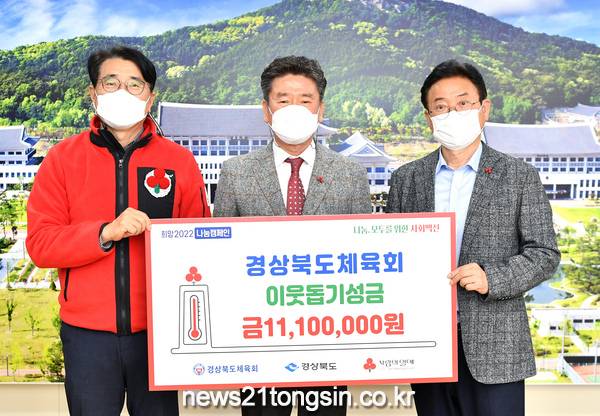 경상북도는 4일 오후 도청에서 경상북도체육회(회장 김하영)가 ‘희망2022 나눔캠페인’에 동참하며 이웃돕기 성금 1100만원을 전달했다고 밝혔다.