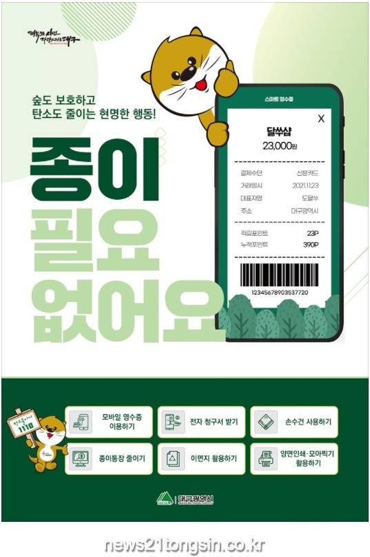 대구시는 ’22년 새해 첫 ‘탄소 줄이기 1110*’ 시민실천행동으로 ‘종이 필요 없어요’를 제안했다.