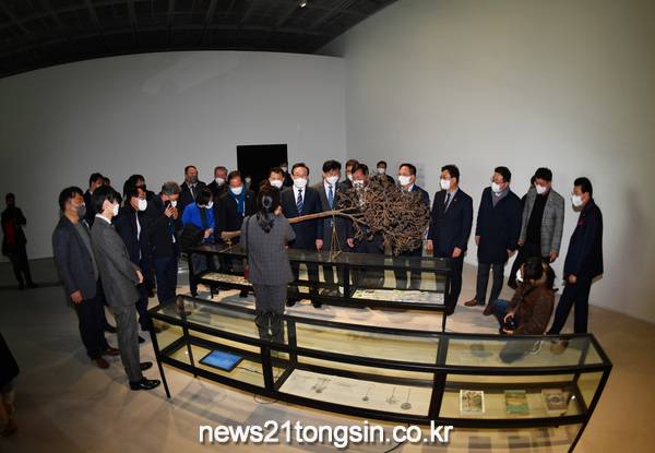 울산시립미술관장 등 참석자들이 전시실을 관람하고 있다.